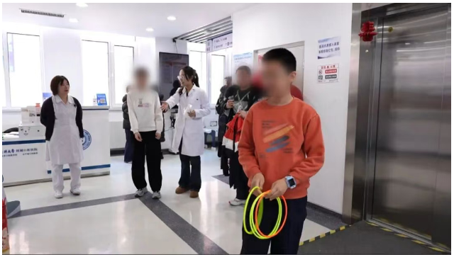 ● 活动伊始,正畸诊疗中心精心准备了套圈和投壶两项传统小游戏,瞬间吸引了候诊区小朋友们的目光。孩子们兴致勃勃地排队参与,在游戏中赢取了牙膏、小玩具等精美奖品。在轻松愉快的氛围中,口腔健康科普的种子悄然播下。