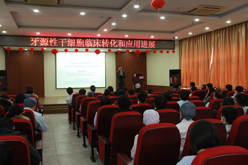 叶青松教授为口腔医学院师生们做了题为《牙源性干细胞转化和应用进展》的学术报告。报告内容深入浅出、逻辑严谨周密,使在场师生受益匪浅。作为牙齿干细胞研究领域的专家,叶教授基于团队在牙齿干细胞方面的研究成果,结合纳米技术和3D打印技术,以深入浅出的方式讲授新知识,开拓新视野。牙齿干细胞是国际口腔医学研究的新领域,因其繁殖能力是其他普通成体干细胞的3倍,且免疫排斥反应低、相容性强,故而对牙齿和骨组织等修复再生潜在意义重大。目前已有研究证实,牙齿干细胞可用于治疗牙周疾病、糖尿病、免疫系统疾病(如红斑狼疮)和神经系统疾病(如帕金森症)等多种疾病,具有广阔的研发和应用前景。