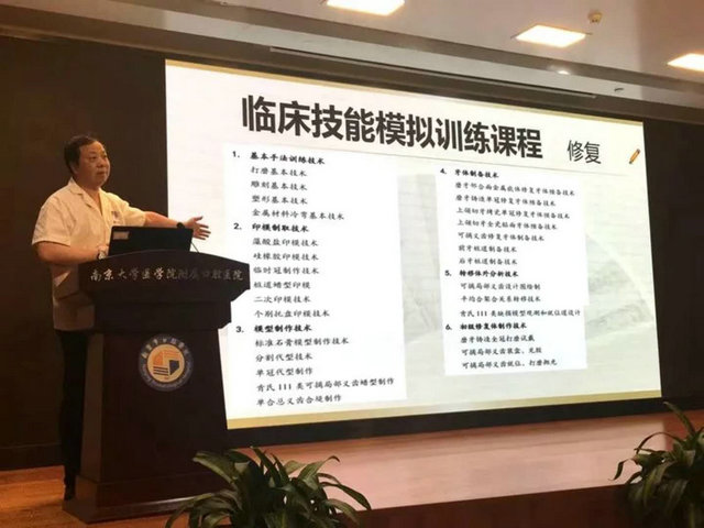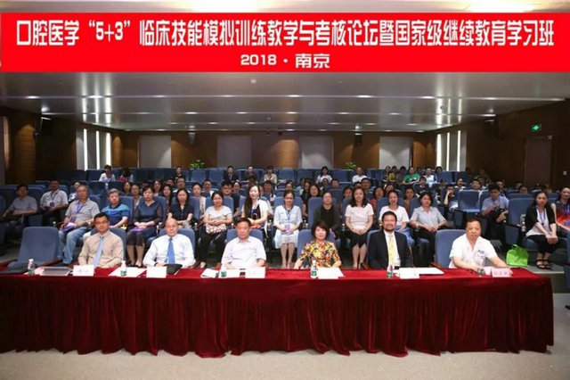 7月15-17日,由南京大学医学院附属口腔医院主办的口腔医学“5+3”临床技能模拟训练教学与考核论坛暨国家级继续教育学习班在南京顺利举办。本次论坛邀请了美国华盛顿大学牙医学院副院长E. Ricardo Schwedhelm教授、口腔修复学临床研究生教学主任张海教授,香港大学牙医学院梁惠强教授做专题讲座。南京市卫计委科教处朱春霞处长、南京市口腔医院胡勤刚院长出席了开幕式。来自上海交通大学、空军军医大学、浙江大学、重庆医科大学、吉林大学等32所大学口腔医学院校和口腔医院的领导和老师参加了此次会议,共同探讨口腔医学本科及专业学位研究生培养及考核模式,交流临床前模拟训练课程体系及教学方法。
