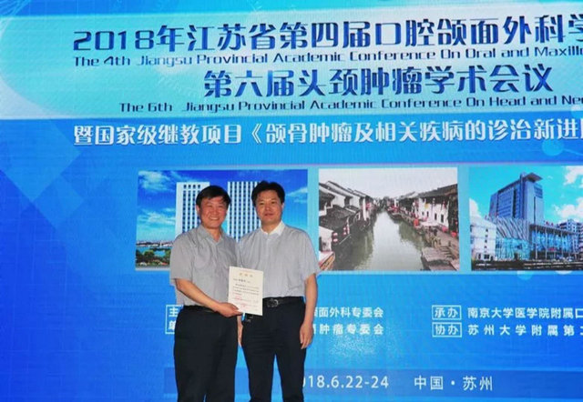 6月22-24日,由江苏省抗癌协会头颈肿瘤专委会主办,南京大学医学院附属口腔医院(南京市口腔医院)、苏州大学附属第二医院口腔科共同承办的“2018年江苏省第四届口腔颌面外科学术会议暨第六届头颈肿瘤学术会议”在苏州成功召开。来自省内外头颈肿瘤领域专家、代表共计150余人参加了会议。