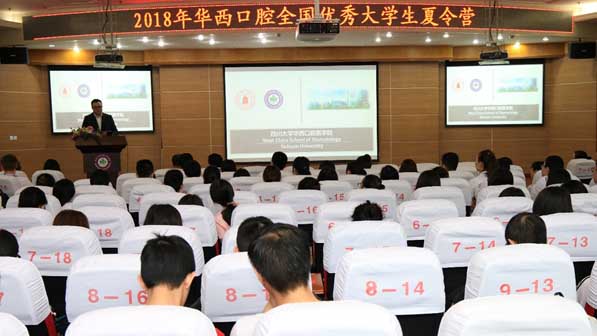 7月17日-19日,2018年华西口腔国际交流营暨全国优秀大学生夏令营圆满举行,来自美国、英国、荷兰、日本、缅甸、泰国、香港的33名交流生及国内27所大学的55名优秀口腔医学生参加了此次活动。医院党委副书记沈颉飞代表学院向营员们表示欢迎,党委副书记孙建勋向营员们介绍了医院的发展历程。