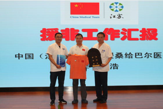 李浩同志汇报了援非前培训及援非一年的工作、学习、生活情况。一年来,作为一名口腔颌面外科主治医师,他克服了医疗资源匮乏、传染病肆虐、气候炎热、缺水断电等重重困难,始终牢记党和祖国的重托,以坚韧不拔的精神坚守岗位,与队员们紧密团结,救治了大量病人,充分体现了援非医生的高素质、好技术,用实际行动践行“不畏艰苦、甘于奉献、救死扶伤、大爱无疆”的中国援外医疗队精神,《人民日报》等媒体作了专题报道。