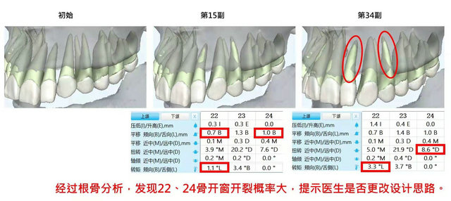 过度的舌倾或内收都有可能导致牙根与骨皮质接触,阻碍牙齿移动,对牙槽骨厚度的错误评估可能会导致牙齿过度移动而形成骨开窗骨开裂等一系列不良后果,甚至可能造成牙根吸收。