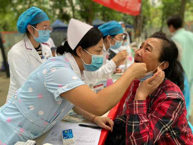 义诊活动现场,护士们为免费前来咨询的群众量血压,指导他们如何正确刷牙、使用牙线,向大家讲解口腔常见病的预防保健知识,指导养成良好的口腔健康生活习惯。医生为他们做口腔检查,并耐心解答群众咨询的问题,为他们提出下一步治疗建议。当天接受健康咨询202余人次,免费测血压100余人次,送出牙刷、牙线、牙膏等小礼品300余份。