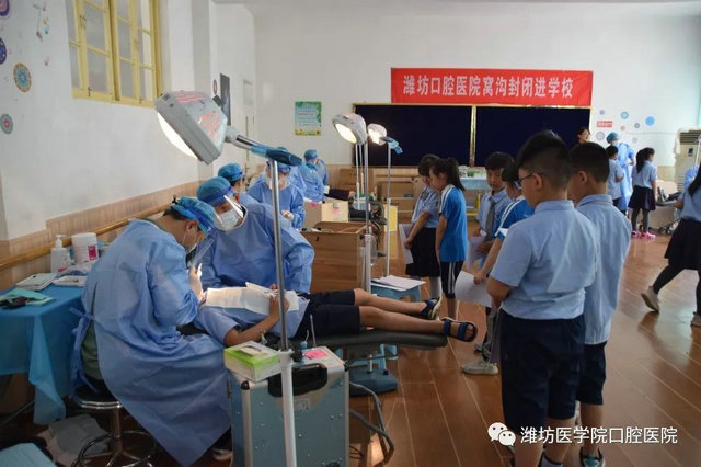 自2015年我市实施适龄儿童免费牙齿窝沟封闭防龋项目以来,医院作为定点医疗机构,连续8年参与我市小学二年级在校生“免费牙齿窝沟封闭”等公益项目,全市80余所小学、5万余名适龄儿童受益。在克服了前期新冠肺炎疫情的不利影响后,2022年潍坊市适龄儿童免费牙齿窝沟封闭防龋项目已正式启动,在校的适龄学生只需按照老师安排在学校安心等候,潍坊口腔医院的专业医师们会进校为学生进行免费的牙齿窝沟封闭。