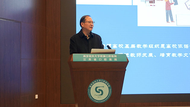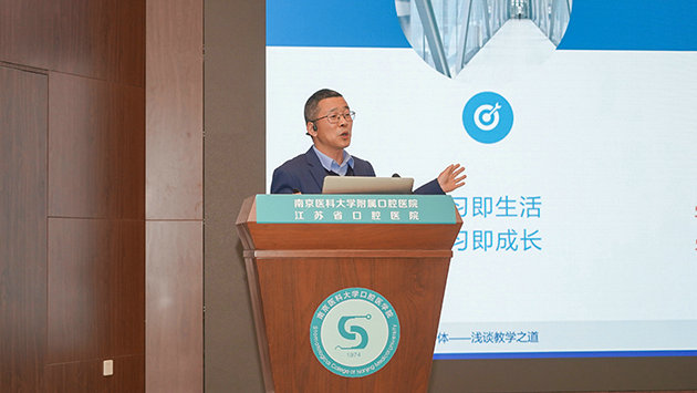 南京医科大学教务处处长喻荣彬教授“浅谈教学之道”,他提出“教而为学,学而为教,学教同源;以教促学,以学促教,教学一体;生而为学,学而为生,学习人生”,激励所有教师注重教学融合,不断提升教学水平。