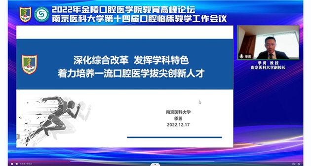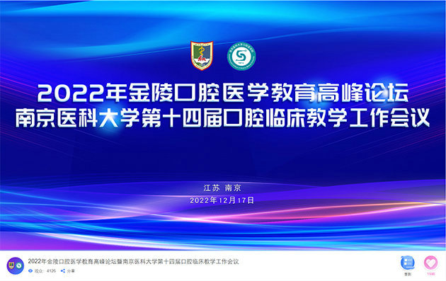 12月17日,金陵口腔医学教育高峰论坛暨南京医科大学第十四届口腔临床教学工作会议在南京医科大学口腔医学院顺利举行。本次大会以“创新融合,共创一流”为主题,邀请到多位国内知名教育教学专家与名师,对医学教育的高质量发展进行深入探讨和解读。江苏口腔医学教育联盟各院校负责人、教师代表等也通过线上线下相结合的方式进行互动交流,在线参会人数4000余人。