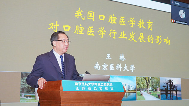 中华口腔医学会副会长、江苏省口腔医学会会长王林教授作了“口腔医学教育对口腔行业的影响”的专题报告,他从口腔医学人才需求的现状出发,凝练了全国口腔医学教育现状特点,从对行业影响的角度探讨了口腔医学教育的发展方向。