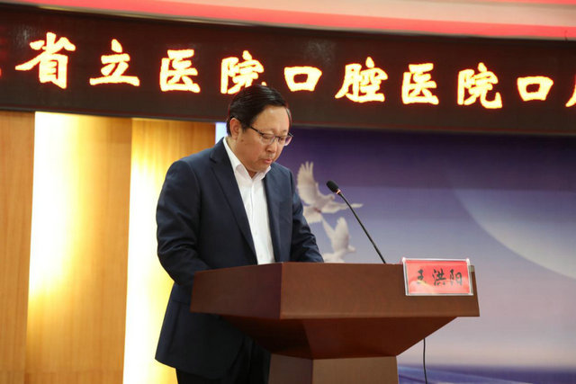 山东第一医科大学口腔医学院院长、山东省立医院口腔医院执行院长张东升致辞。张院长详细介绍了山东省立医院口腔医院的发展历程,并指出此次山东省立医院口腔医院与诸城市人民医院建立口腔颌面外科专科联盟是推进医院管理改革、提高对居民口腔健康服务水平的良好探索。他表示,下步将充分利用省立医院口腔医院的资源优势,把学科建设、先进技术交流作为重点,把培养带动年轻医师作为方向,通过长期到诸城市人民医院开展门诊治疗、学术讲座、临床科研、口腔颌面外科手术等合作共建方式,协助诸城市人民医院打造县域口腔特色专科中心,为诸城老百姓的口腔健康和诸城市口腔学科的建设贡献力量。