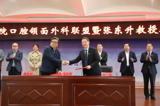 张东升院长与张毅院长签订“山东省立医院口腔医院口腔颌面外科专科联盟”协议。
