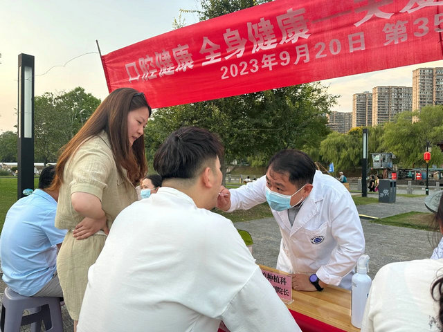 9月17日下午,利用周末休息时间,由金伟鹏、丁鑫、章利淼副院长带队,正畸科、种植科、修复科、颌面外科、口腔内科、儿童口腔科等各科室主任组成的义诊团队一行12人来到里运河文化长廊,举办920爱牙日义诊,开启了此次主题系列活动的序幕。