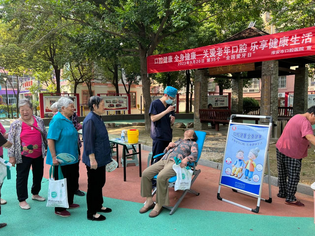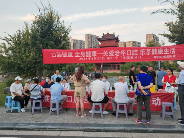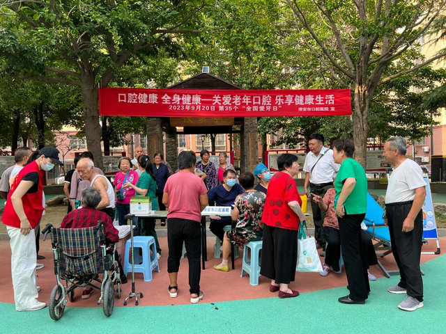 2023年9月20日是第35个“全国爱牙日”,今年的活动主题为“口腔健康 全身健康”,副主题为“关爱老年口腔 乐享健康生活”。为广泛宣传口腔健康知识,营造全社会关注口腔健康的良好社会氛围,在淮安市口腔医院支部的统一组织安排下,淮安市口腔卫生指导中心精心策划开展“9·20全国爱牙日”系列口腔健康义诊、宣教活动,向公众普及口腔健康知识,增强群众口腔保健意识,助推全民口腔健康水平提升。