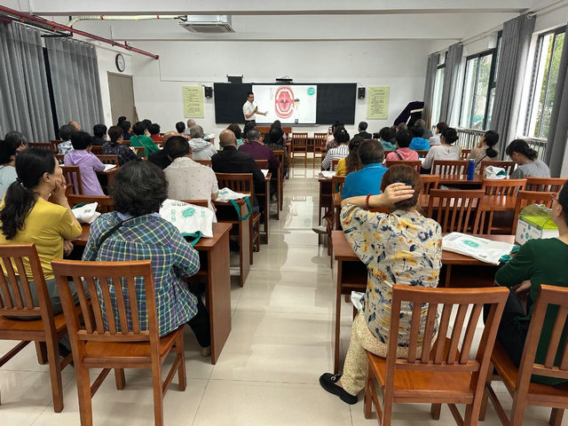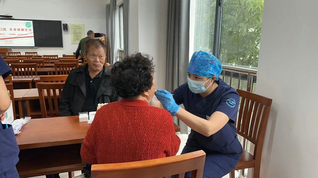 讲座结束后,逐一解答老年学员自身牙齿困扰,检查大家的口腔状况,并给予口腔问题的初步解决方案。