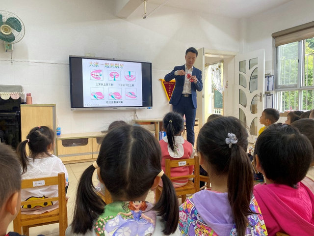 活动中,张雄医生通过生动形象的“刷牙牙”科普主题向小朋友们讲述了牙疼的原因、刷牙的好处以及预防龋齿的具体方法,并演示了正确的刷牙方法。在互动过程中,小朋友们积极参与,踊跃回答问题,并主动进行刷牙实践操作。张雄医生还对每个小朋友提供了专业口腔健康检查,根据口腔问题给出进一步治疗建议。