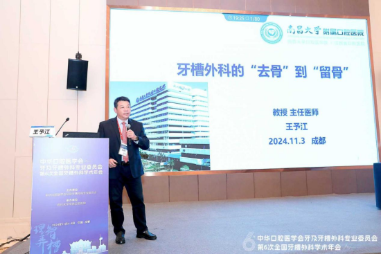 本次会议共吸引了全国范围内近1000名口腔医学界人士参与。会上,南昌大学附属口腔医院副院长王予江教授,以《牙槽外科中的‘去骨’与‘留骨’》为题,与广大同仁分享了牙及牙槽外科的新理念、新技术。