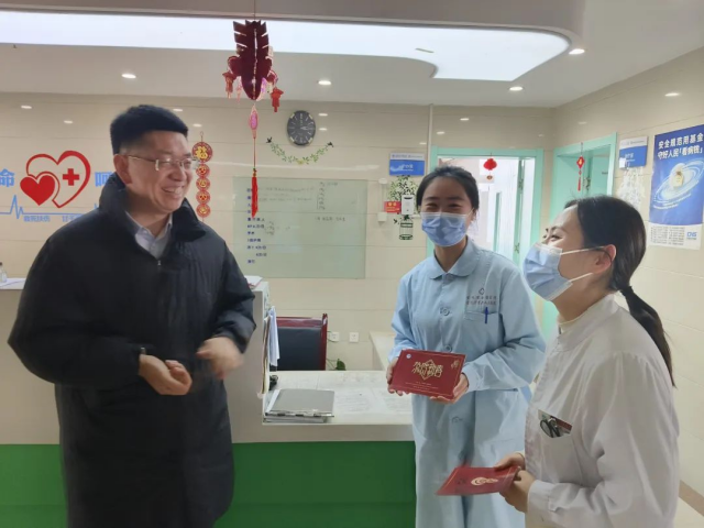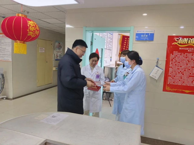 每到一处,领导们都为值班人员送上了精心准备的新年贺卡和新春慰问品,这些慰问品不仅是物质上的关怀,更是对值班人员辛勤付出的认可和鼓励。收到慰问品的值班人员纷纷表示,领导们的关心和问候让他们倍感温暖,更加坚定了他们坚守岗位、服务患者的决心。他们将不辜负领导和群众的期望,以高度的责任感和使命感,认真履行职责,确保节日期间医院各项工作的正常运转,为患者提供优质、高效、安全的医疗服务。