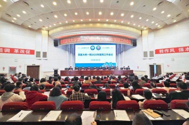 2月25日,昆明医科大学第一附属医院在西昌路院区多功能报告厅召开2025年医院工作会议。云南省卫健委医政处处长杨方,昆明医科大学医院管理与发展中心副主任马宗仁出席会议。会议由学校党委常委、医院党委书记陆地主持。