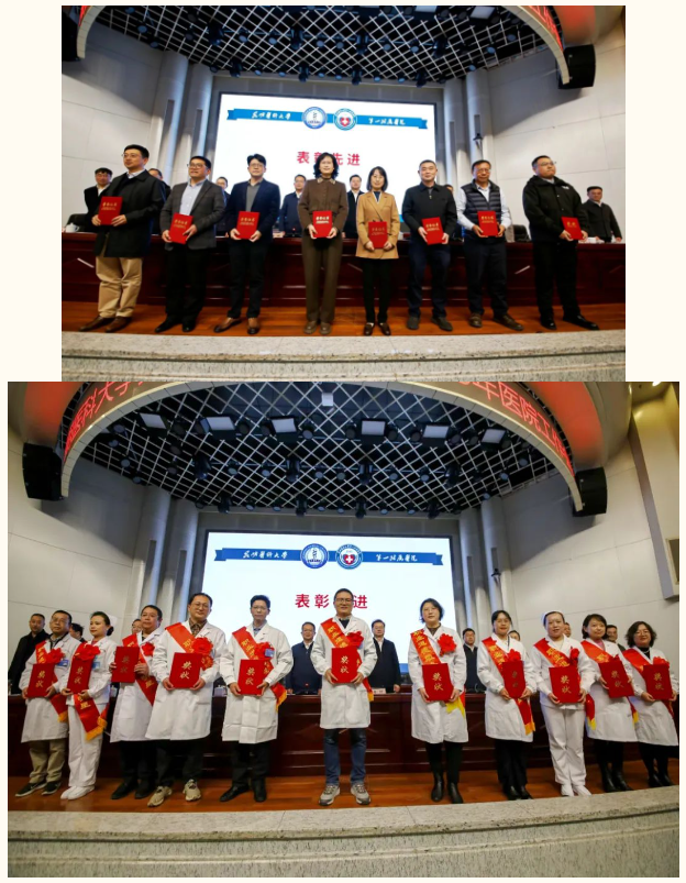 党委委员、副院长梁红敏宣读了2024年度获得国家级、省级人才项目、科研立项的通知;党委委员、副院长朱梅宣读了2024年度国家级、省级教学竞赛获奖教师(团队)的通知;党委副书记杜安强宣读了2024年度职业道德先进集体、服务明星和先进个人的表彰决定及名单;党委委员、副院长缪应雷宣读了2024年度先进集体和个人的表彰决定及名单;与会领导为获奖集体和个人颁发了奖状。