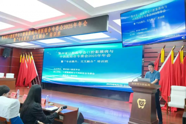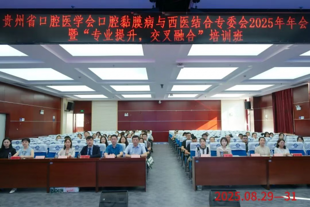 2025年8月30日至31日,由贵州省口腔医学会主办,口腔黏膜病与中西医结合专业委员会和贵阳市口腔医院(贵州大学口腔医院)联合承办的贵州省口腔医学会口腔黏膜病与中西医结合专业委员会2025学术年会暨“专业提升,交叉融合”培训班在贵阳市口腔医院成功召开。本次会议旨在深入推进口腔黏膜病领域的中西医结合研究与临床实践,加强多学科交流与协作,提升专业诊疗水平。