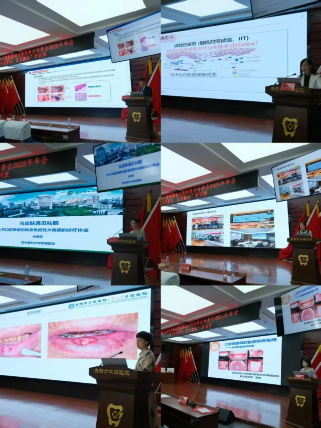 会议特邀国内及省内多位知名专家进行专题授课。武汉大学口腔医院周刚教授以《“多平台”赋能口腔黏膜精准医疗》为题,分享了前沿技术在多学科协作中的应用;四川大学华西口腔医院周红梅教授通过《实例解析口腔黏膜病多元化临床研究模式》,系统阐述了临床研究的设计与实施;贵州医科大学附属医院皮肤科主任医师余德厚、贵州医科大学附属口腔医院主任医师刘洪静、贵阳市口腔医院主任医师杨宏、贵州医科大学附属口腔医院副主任医师王珣等多位专家,分别结合各自专业领域进行了分享和交流。