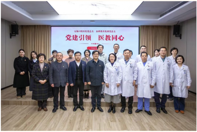 无锡口腔医院党政领导、党员代表及相关科室负责人,金桥教育集团董事长、总经理、副总经理等集团领导、金桥双语实验学校领导共同出席活动。