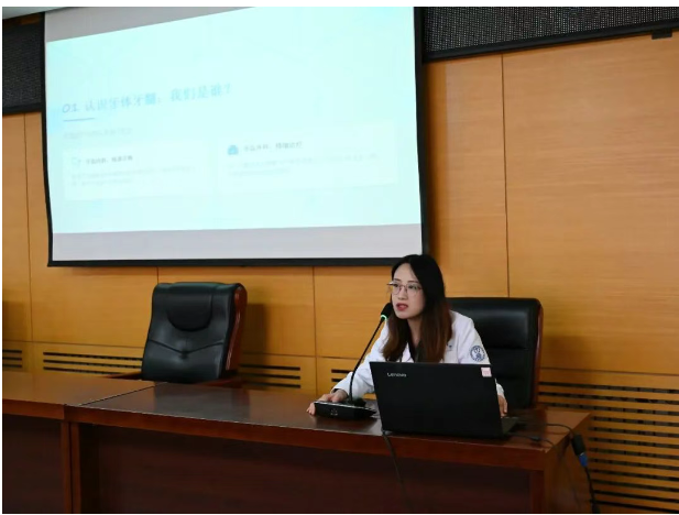 沈阳市口腔医院副院长张薇带领微笑志愿服务专家团队来到皇姑分局为干警们进行口腔健康知识讲座及口腔保健服务,医院和平院区综合门诊张欣医生利用PPT和现场互动的形式,为大家讲解了常见的牙疼的处理方法等口腔保健知识,并重点纠正了日常生活中大家不正确的洁牙、护齿方式。