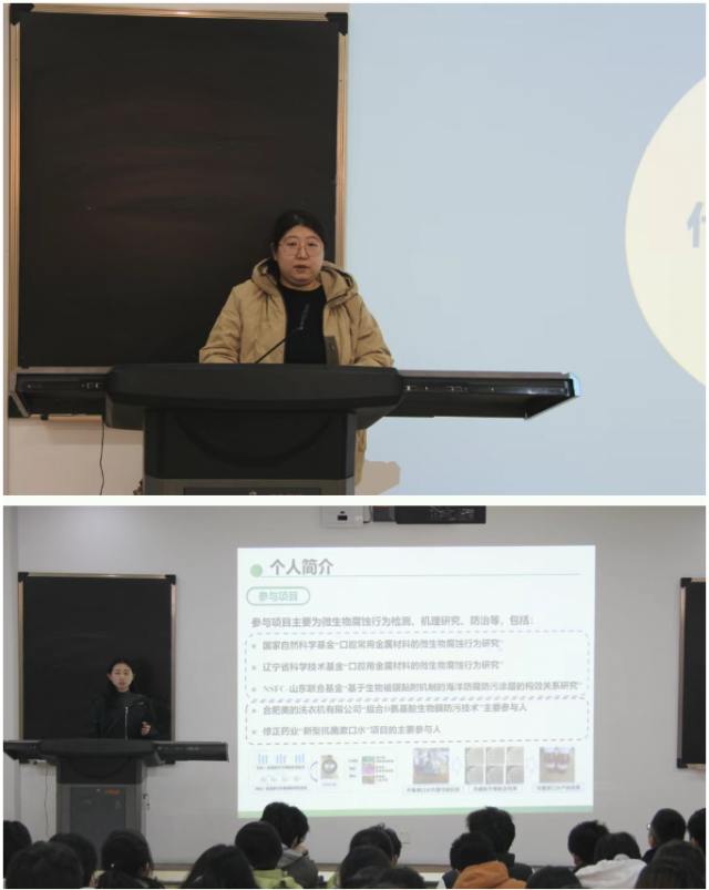 讲座中,刘若楠副研究员以《水凝胶材料:概念,合成,应用》为题,系统解析了水凝胶生物材料这一前沿领域的核心知识;杨艺副研究员以《口腔微生物与材料腐蚀的界面科学》为题,分享了口腔材料腐蚀领域的前沿研究成果与检测技术;汤红艳副研究员以《从临床问题到创新成果——镁合金GBR膜研发史》为题,聚焦口腔骨再生(GBR)领域的临床痛点与材料创新。