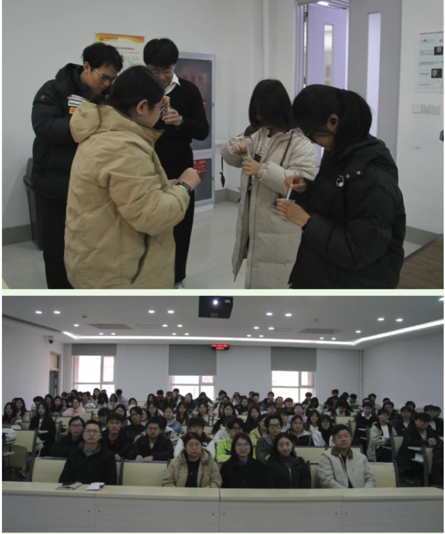 三位老师结合自身科研实践,系统分享最新研究成果,深入解读行业发展动态,细致讲解学科前沿进展。老师们以专业严谨又通俗易懂的讲解,为在场本科生呈现了一场兼具学术深度与实践价值的学术盛宴,有效引导低年级学生走近科研、了解科研、向往科研,助力学生夯实专业基础、明晰学术方向,营造了浓厚的校园学术氛围。